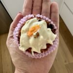 - Prepare the icing: mix the yogurt and protein powder until homogeneous.