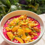 This High-Protein Beetroot Medi Bowl is an incredibly delicious and nourishing plant-based dinner option. It’s packed with 30 grams of protein and 18 grams of fiber per serving while also rich in iron, magnesium, zinc, potassium, vitamin C, and folate. The combination of beetroot and dill not only enhances the dish’s flavor but also boosts its antioxidant and anti-inflammatory properties. And who can go past a bowl with a creamy sauce and baked cauliflower and potatoes on top?! Our super popular Mediterranean Potato Tzatziki Bowl is another one to check out if you’re looking for an easy midweek dinner option with lots of flavors that everyone will adore.