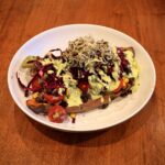 Wow! I’ve never really liked sweet potatoes, now I LOVE sweet potatoes…well, as of yesterday! What a recipe – I could eat it every day! Just a heads up; it may be the converter playing up, but the main recipe says 1tbsp + 1tbsp of lime juice, but the method refers to two lots of half a tbsp! I used 2 full tbsps and it was grand! I think I used some sort of cabbage seeds and sprouted them this time, I’ve a kit and my ADHD just grabs random seed packets, but it made no odds to the end result!
