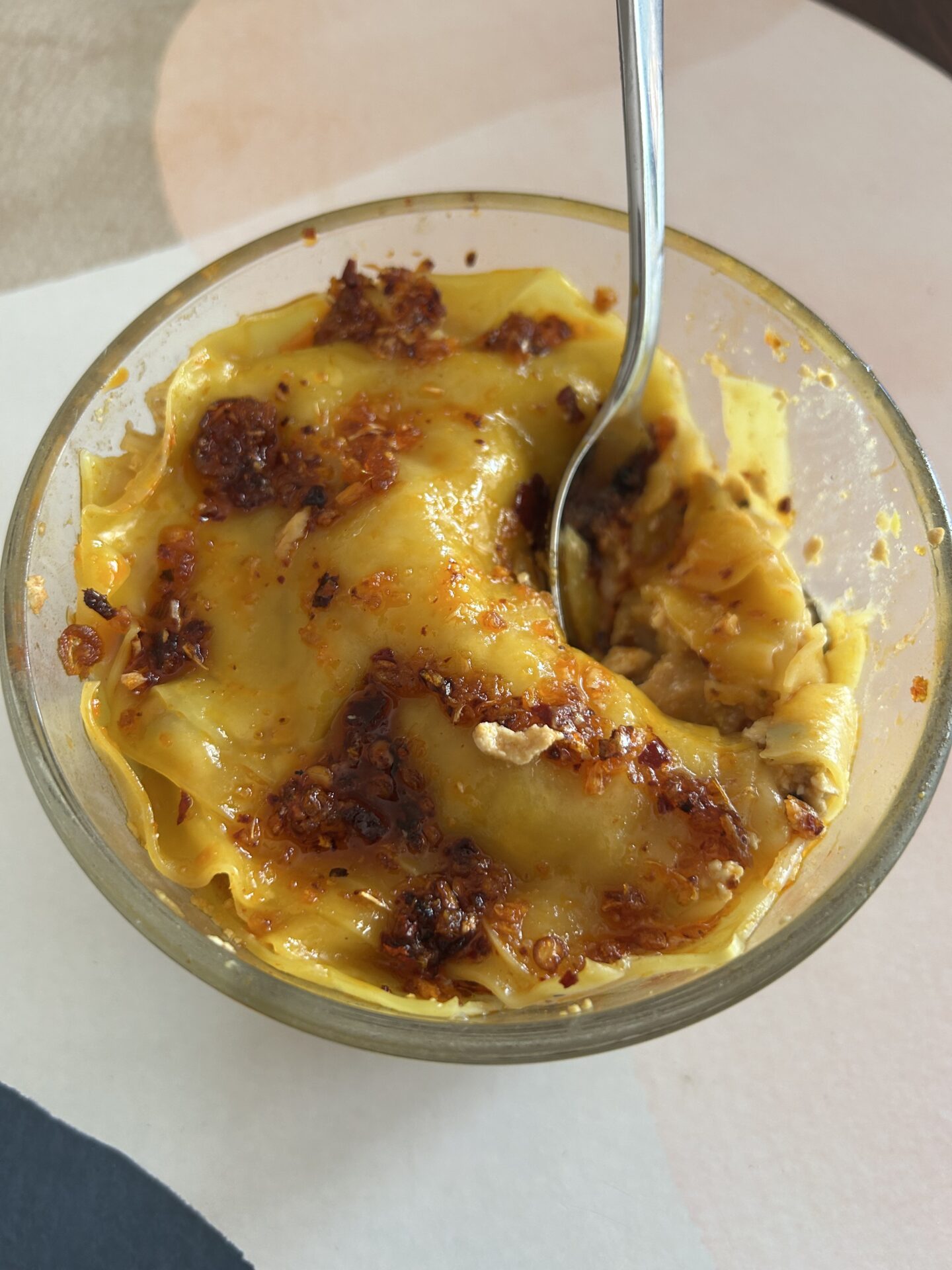 - Serve: Spoon over crispy chili oil and serve immediately.