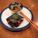 Family hit! Our 5yo was keen to help slice veg, flip the tofu and assemble the various bits, and woke up the next morning asking if we could make it again! Our variations on the recipe: thinly sliced chiogga beets marinated in rice vinegar and maple syrup (as a colourful twist on pickled ginger), and substituted a tamari-miso-garlic sauce for the sriracha, since said 5yo isn’t interested in much heat (yet!). Now if only we could buy seaweed and rice paper without all the plastic packaging 🙁