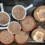 Preheat your oven to 350°F (180°C) with the fan on. Prepare the batter by dividing the mashed banana, oats, chia seeds, protein powder, baking powder, coffee, and soy milk evenly between four oven-safe containers. Stir well to combine.