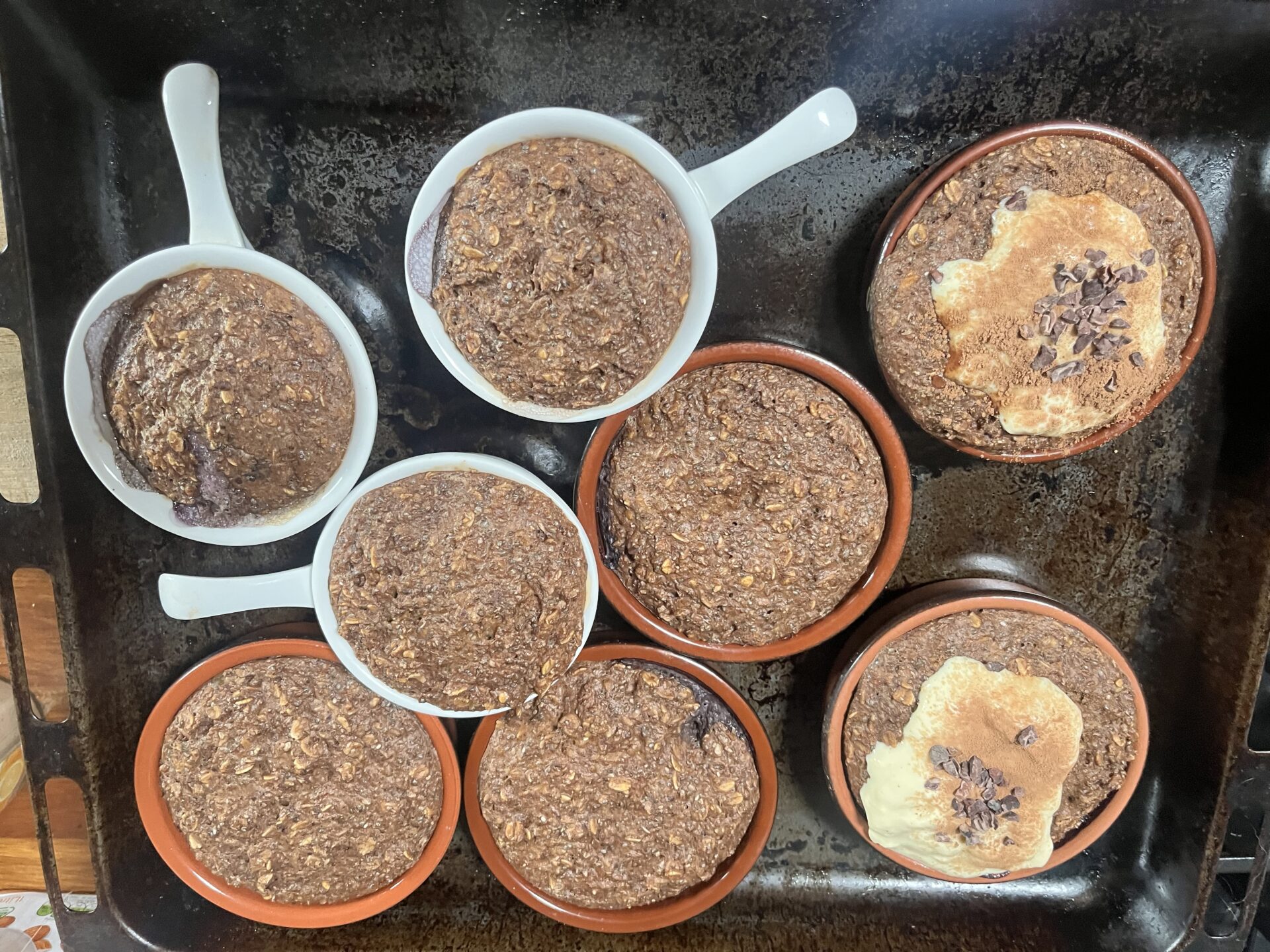 - Serve: Once the baked oats are done, remove them from the oven and let them cool slightly. Enjoy hot or cold, and top with the yogurt and cacao powder.