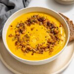 In a large pot, heat 1 tablespoon of olive oil, add the leek, and cook for 5 minutes. Then, add the garlic, ginger, turmeric, and cumin. Cook for 2 minutes until fragrant. Then add the carrots, butternut squash, lentils, cashews, and vegetable stock. Bring to a soft boil, then reduce the heat, cover partially, and cook for 30 minutes or until all the vegetables have softened. Turn off the heat.
