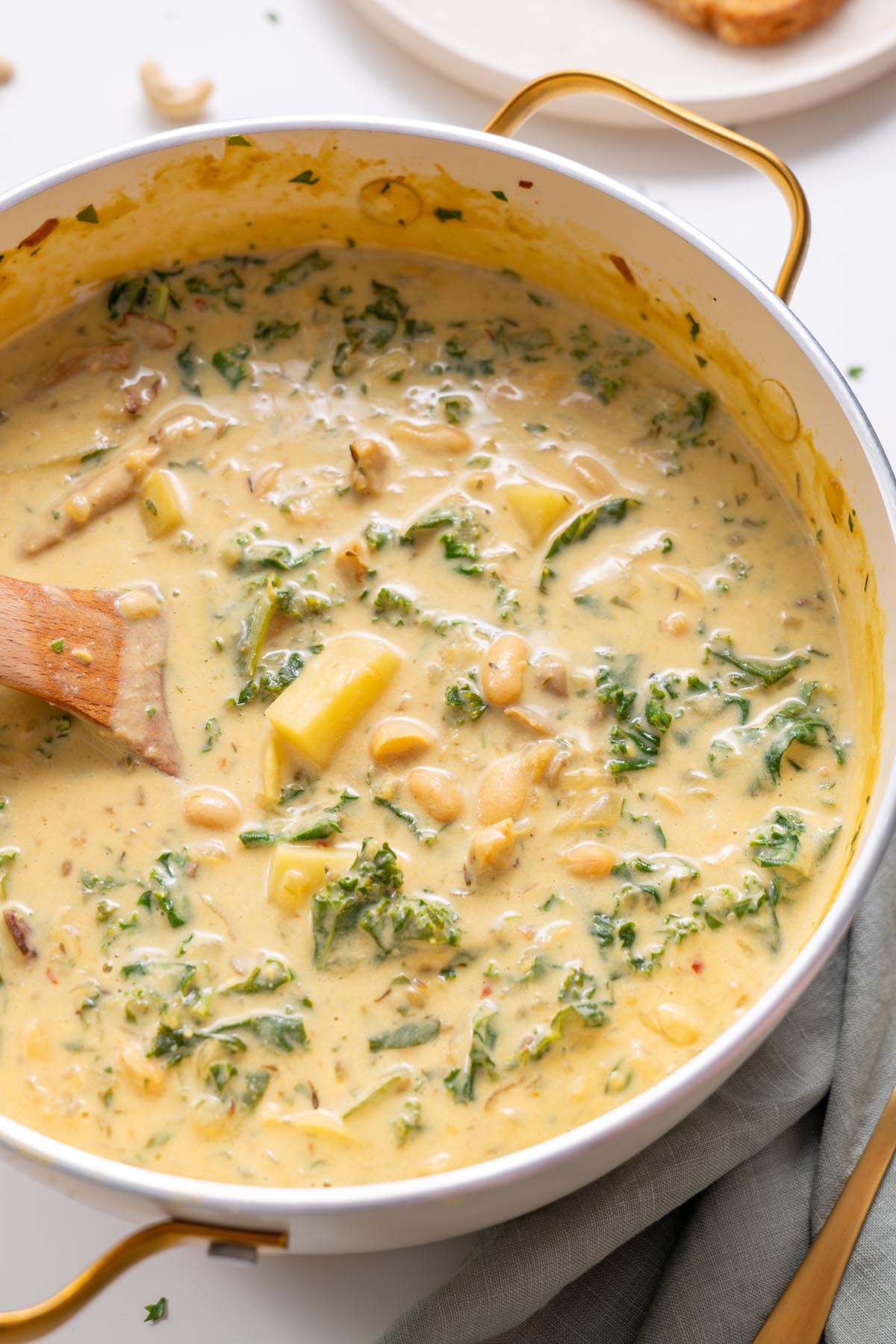 - Calcium-rich for bone health: With 320 mg of calcium per serving, this soup provides about 30% of your daily calcium needs, thanks to the kale, white beans, and fortified plant milk in the cashew cream.